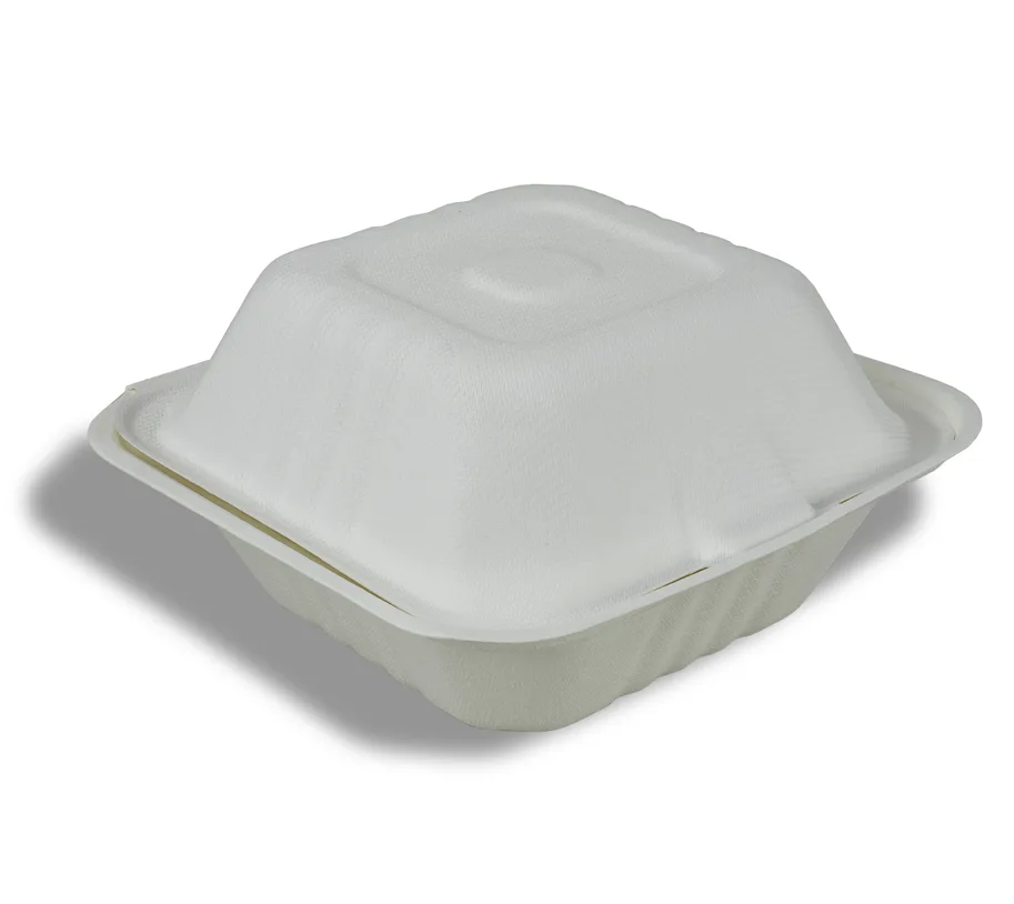 Einweg Hamburger-Box aus Bagasse, weiss, 130 x 130 x 70mm